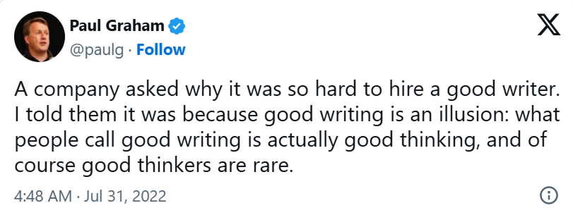 Paul Graham nailed it: good writing is good thinking. When you outsource